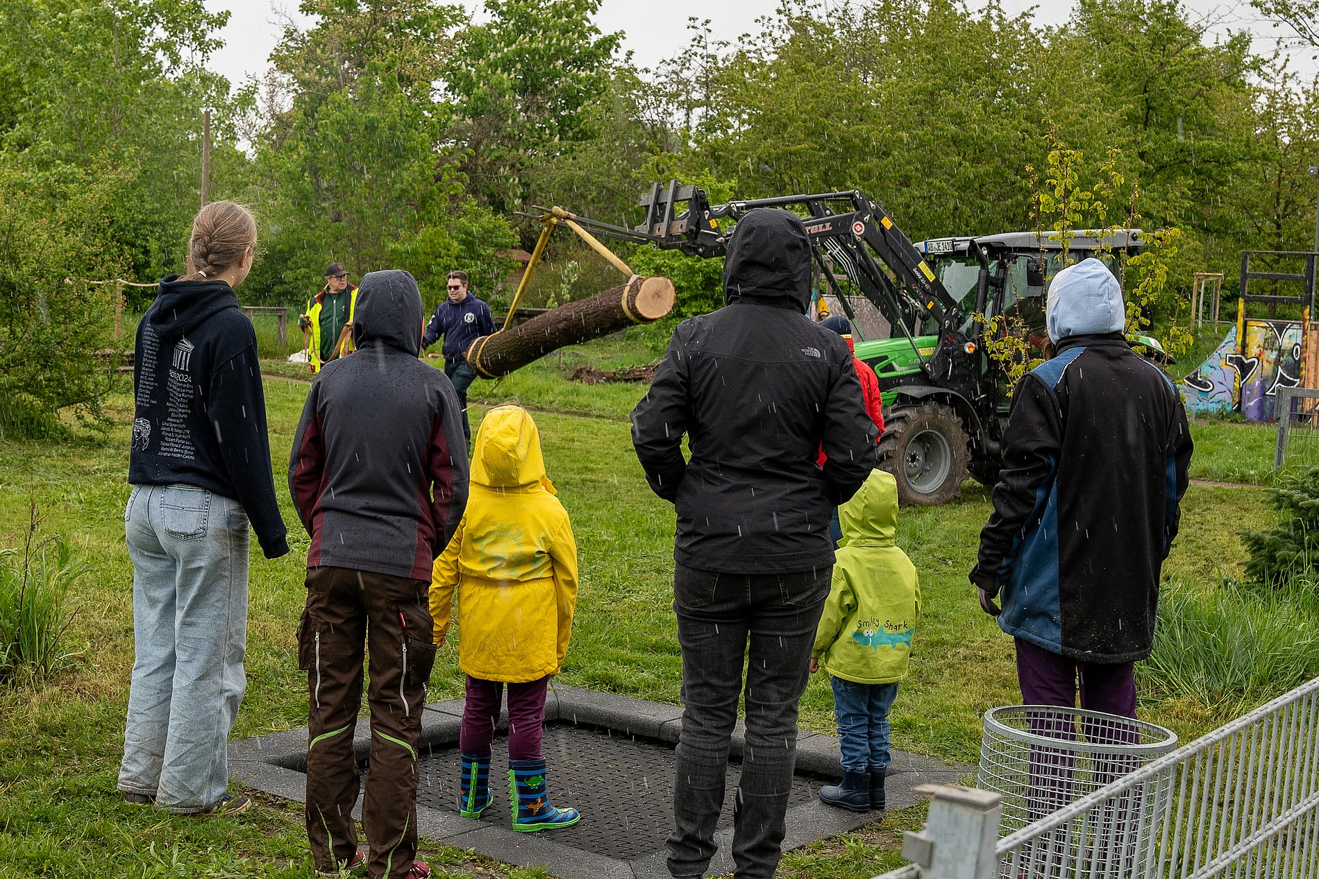 Alexander Schrörs und Katharina Hesselbach verbringen, gemeinsam mit zehn Pfadfinderinnen und Pfadfindern zwischen zwölf und 14 Jahren aktuell drei Tage auf dem Abenteuerspielplatz am Dornbusch, inklusive drei Übernachtungen – im Rahmen der 72-Stunden-Aktion nämlich, bei der deutschlandweit junge Menschen aktiv sind, um die Welt ein kleines Stückchen besser zu machen. Auf dem Colorado-Gelände bedeutet das konkret: Das Backhaus-Dach wird dicht gemacht, der Lehmputz wieder aufgefrischt und das Rampenhaus für Rollstuhlfahrer:innen ausgebaut. Dass es am Freitag durchgehend regnet, ist zwar etwas nervig, hält die motivierte Gruppe aber nicht von der Arbeit ab. Für die Jugendlichen ist es vor allem schön, dass ihre Arbeit sichtbare Erfolge bringt. „Den Pizzaofen im Backhaus zum Beispiel können wir nach dem Arbeitseinsatz gleich mal anfeuern“, meint Holger Wiegel vom Abenteuerspielplatz, der die Gruppe gemeinsam mit seiner Kollegin betreut – und der über das Wetter sagt, Regen sei auch nur „flüssiger Sonnenschein“. Sozialarbeiterin Jani Elsheimer fügt an: „Wir freuen uns sehr über die Hilfe. Auf dem Spielplatz hört die Arbeit ja nie auf.“