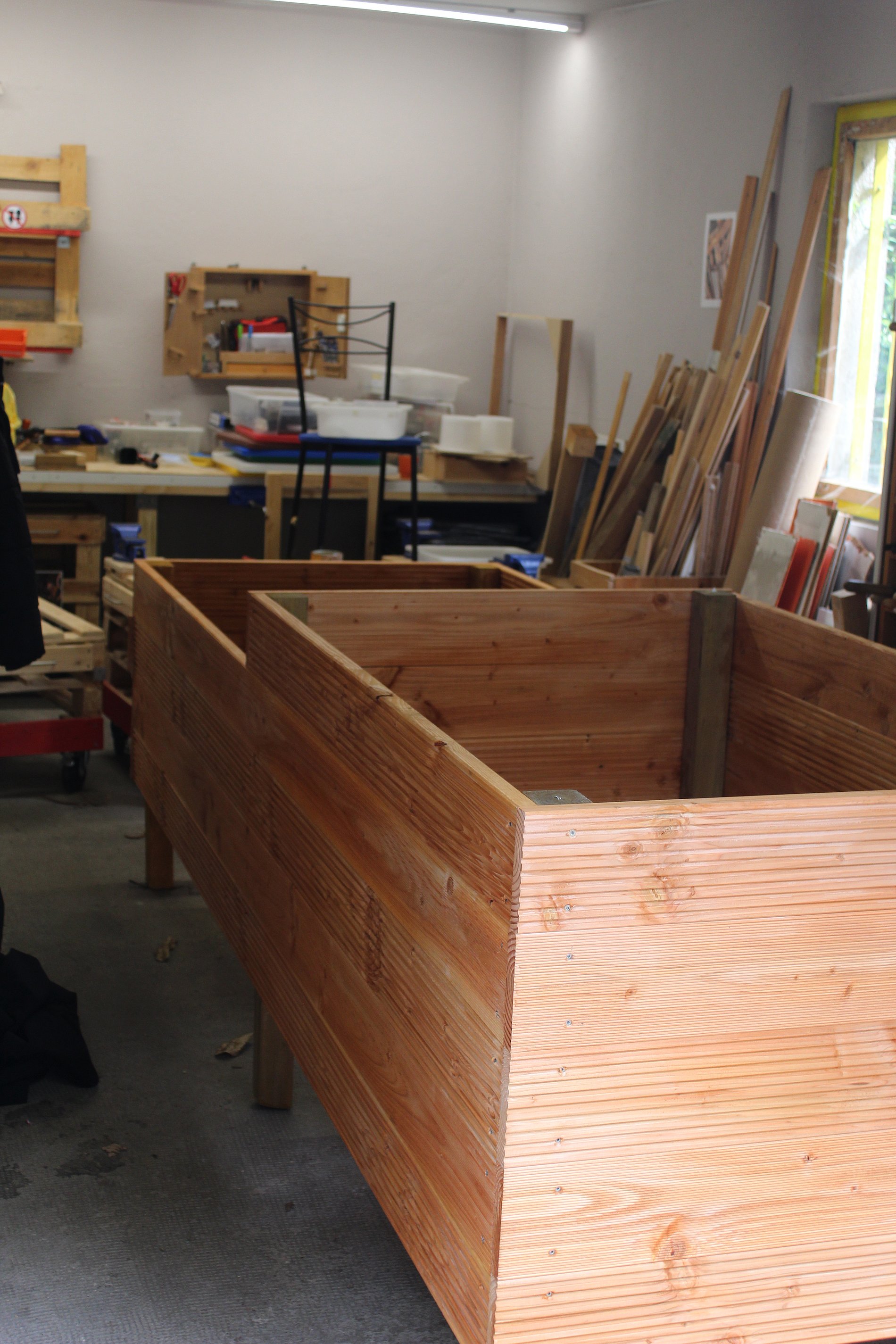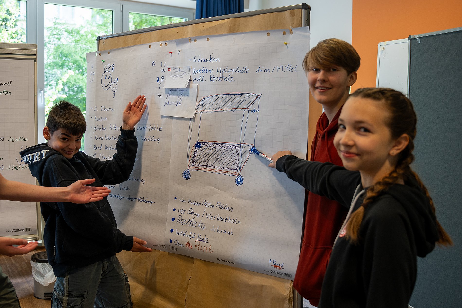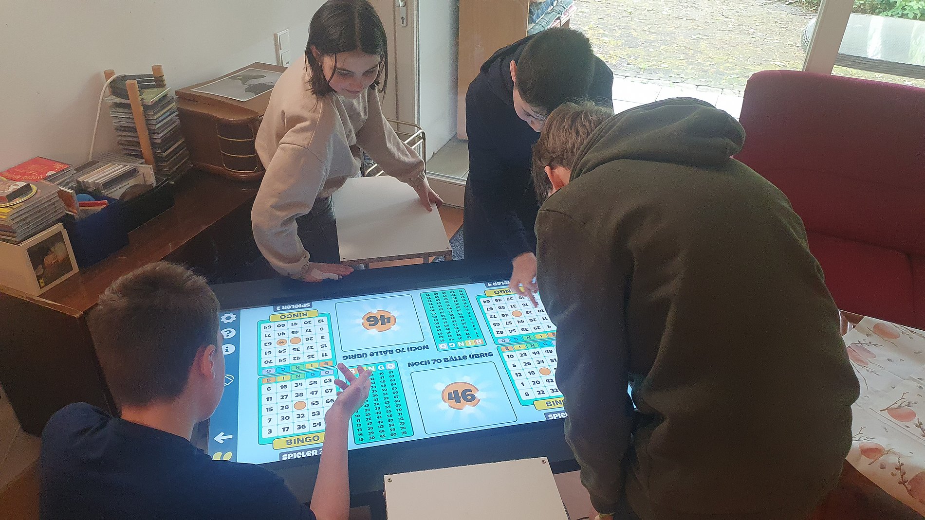 Im Altenzentrum Santa Teresa gibt es einen Care Table, ein großes Tablet mit Internet zum Spielen, Singen usw. Hierfür baut die KGS Niederrad unter anderem Tische, die z.B. zum Getränke abstellen genutzt werden können.