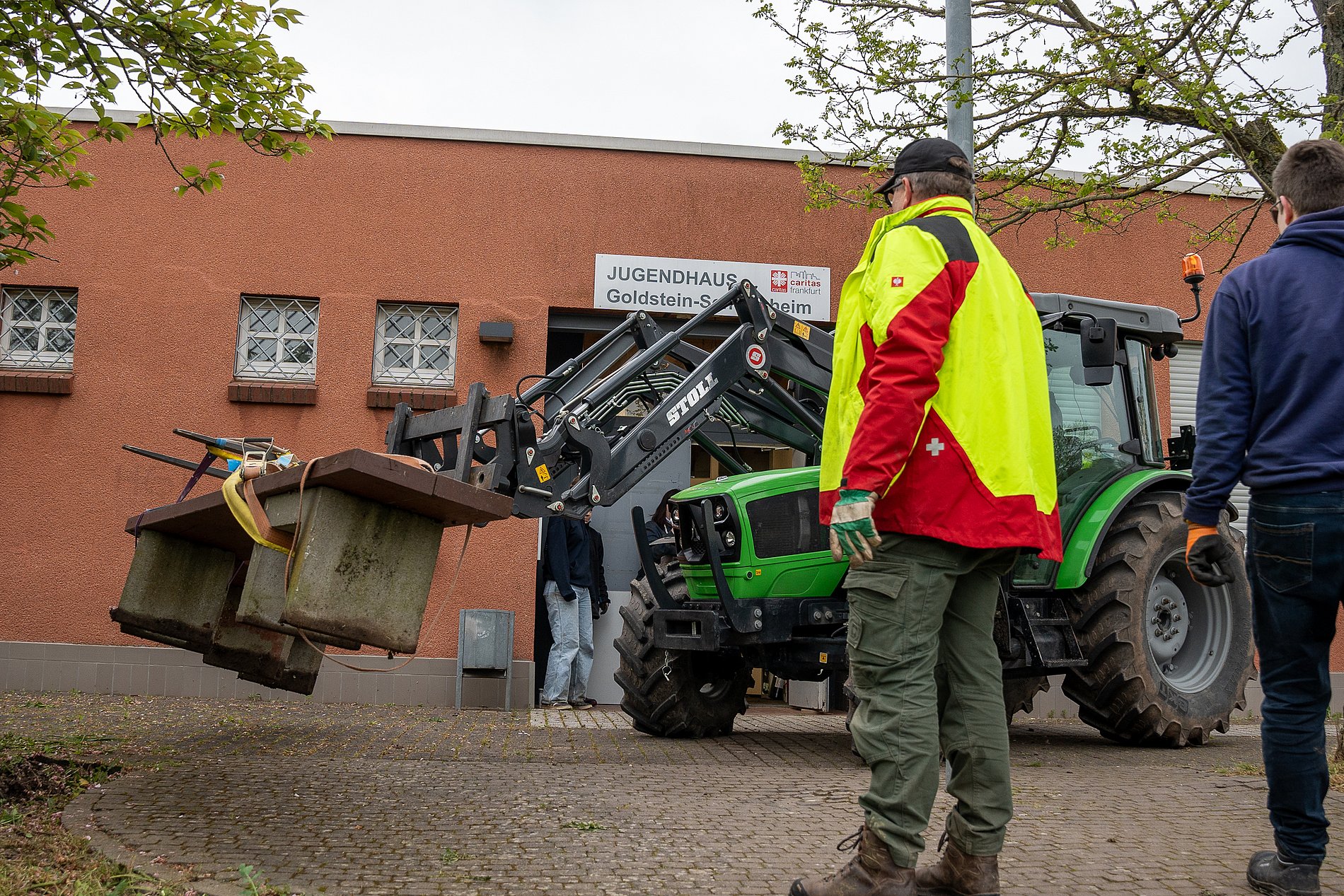 Die DJK Zeilsheim gestaltet den Kirchvorplatz des Kirchortes St. Aposteln der Pfarrei St. Bonifatius Sachsenhausen, Zielhüttenweg 149. Hier sollen Hochbeete und Sitzgelegenheiten entstehen.