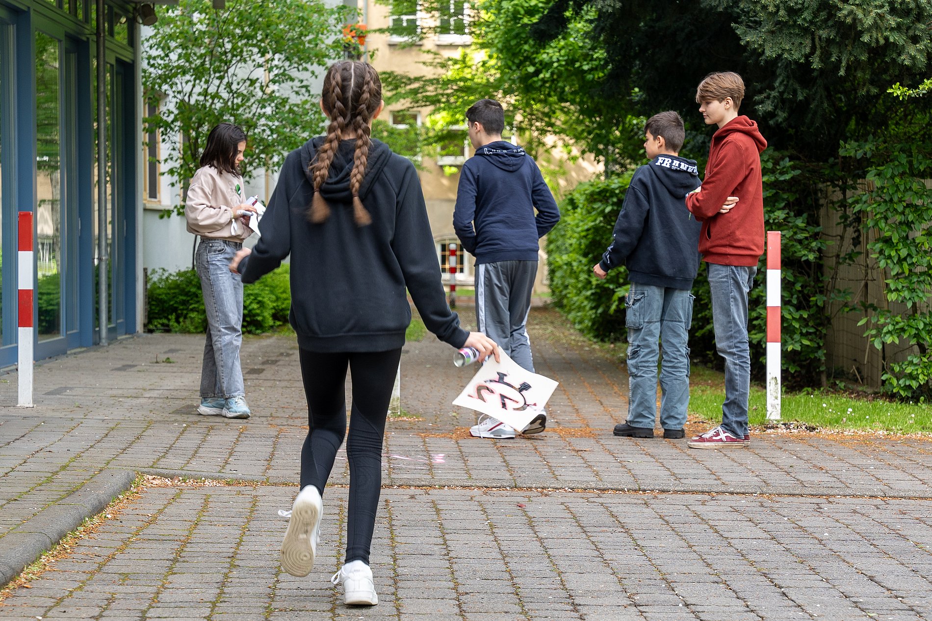 Insgesamt machen in Frankfurt derzeit zehn Gruppen und 220 Kinder mit. Die Pfadfinder aus Oberrad gestalten den Garten der KinderKulturFarm Frankfurt um, die Franziskusjugend legt einen Pfad durch den Garten des Jugendhauses Goldstein an, die Firmlinge von St. Marien / St. Josef organisieren auf Einladung der aufsuchenden Kinder- und Jugendarbeit auf dem Bolzplatz der Henriette Fürth Straße ein Nachbarschaftsfest. Die Gruppe DJK Zeilsheim legt Hochbeete auf dem Gelände von St. Aposteln an, die Kita Rosengarten wünscht sich vom DPSG Stamm Don Bosco Schwanheim ebenfalls Hochbeete und die KGS Niederrad werkelt an Ergänzungen für den sogenannten Care-Table des Altenzentrums Santa Teresa, einem digitalen Tisch für die Pflege. Im Vorfeld selbst ausgesucht hatte sich die Jugend der Pfarrei St. Hildegard das Anlegen eines Fühlpfades auf dem Gelände der Kita St. Lioba.