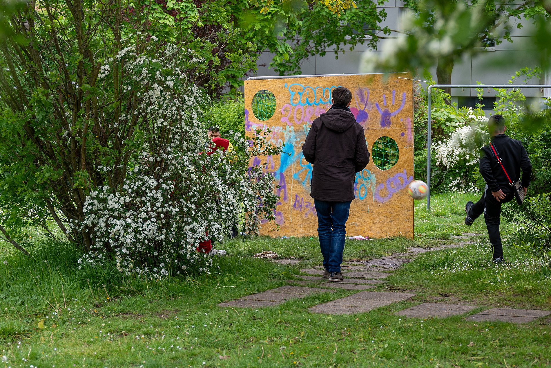 Der Bolz- und Spielplatz „Acker“ in der Henriette-Fürth-Straße ist ein beliebter Treffpunkt für Kinder und Jugendliche in Frankfurt-Schwanheim. Hier organisieren die Firmlinge St. Marien/St. Josef ein Kinderfest.