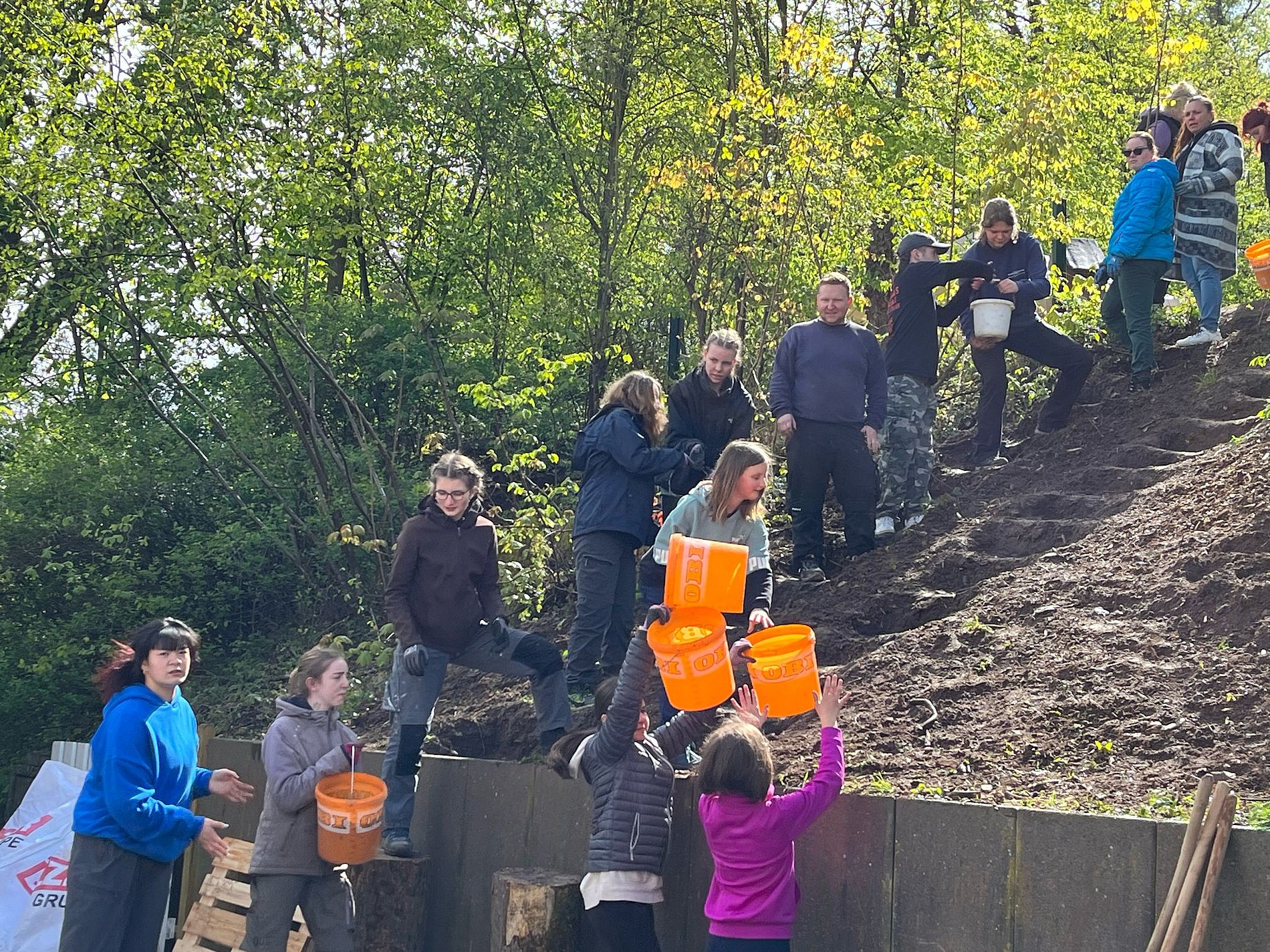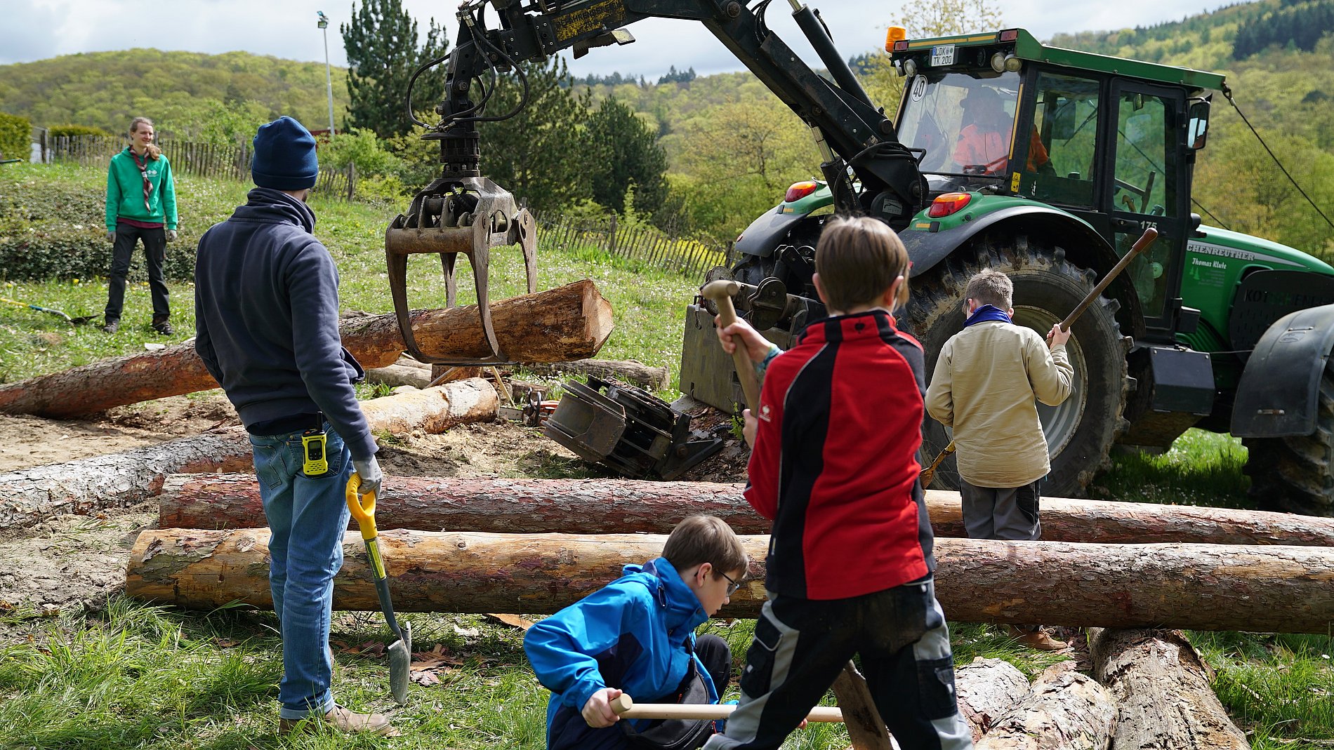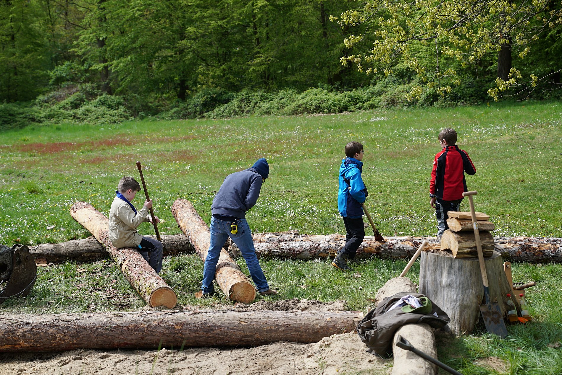 Im Naturkindergarten am Kirschenwäldchen, Lärchenweg, in Wetzlar werden kleine Bauprojekte umgesetzt: von neuen Garderoben, zum Beispiel für die Gummistiefel, und Kleiderboxen für Wechselkleidung über das Reparieren des Zauns bis hin zu einem Barfußpfad im Wald. Hier ist die Aktionsgruppe „ULF & MaJu“ im Einsatz, bestehend aus der Pfarrjugend und der Malteserjugend.