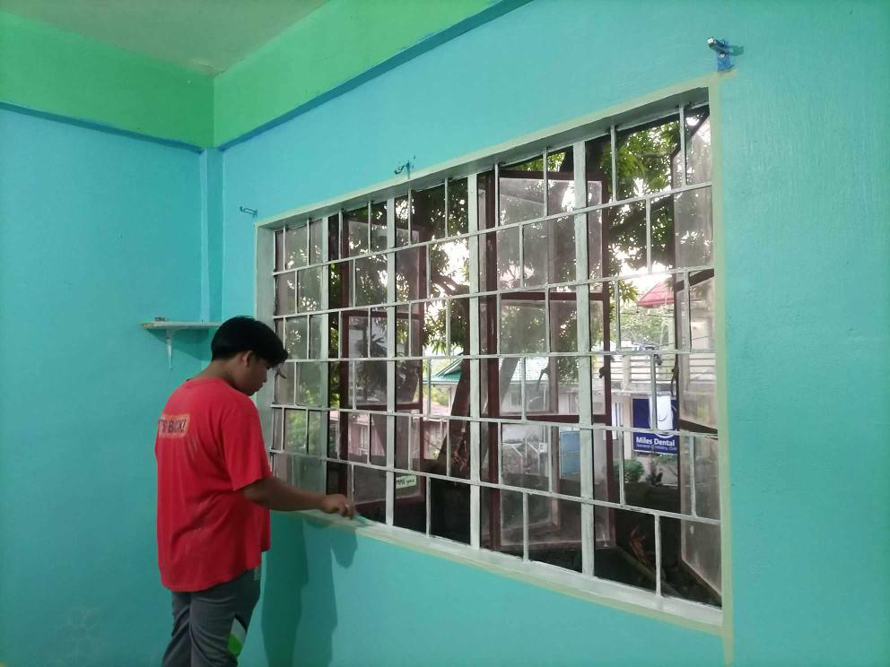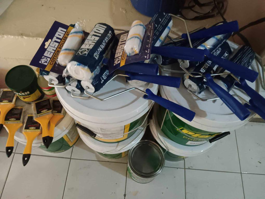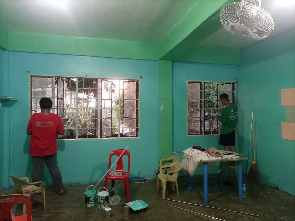 Im Lernzentrum wird ein Klassenraum neu gestrichen.